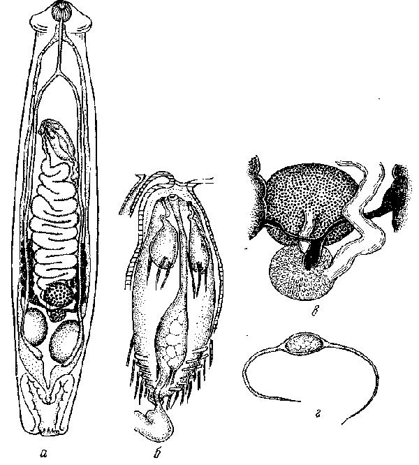 а — марита; б — половая бурса; в — комплекс женских половых органов; г —яйцо