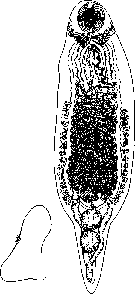 Он проходит в среднедорзальную область тела и вскоре, расширяясь, образует скрученный семенной пузырек, наполненный сперматозоидами. Недалеко от уровня середины длины тела семенной пузырек суживается, образует узкий проток и открывается в половую бурсу. Внутри половой бурсы имеется небольшое сферическое расширение, часто наполненное спермой; вот в эту расширенную часть, выстланную высокими эпителиальными клетками, и открывается проток семенного пузырька. За этим расширением следует короткий узкий проток, ведущий в длинную, тоже расширенную часть — циррус, стенка которого вооружена кутикулярными шипиками.