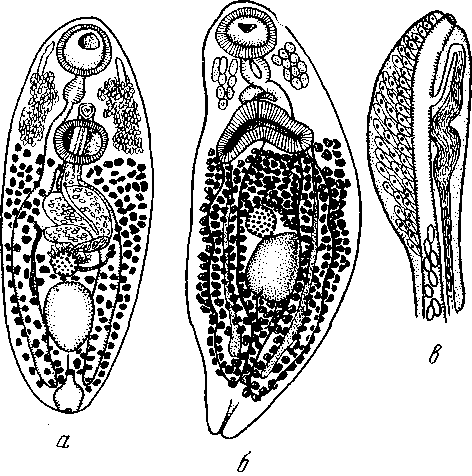а и б — индивидуальные вариации мариты; в — гермафродитная бурса