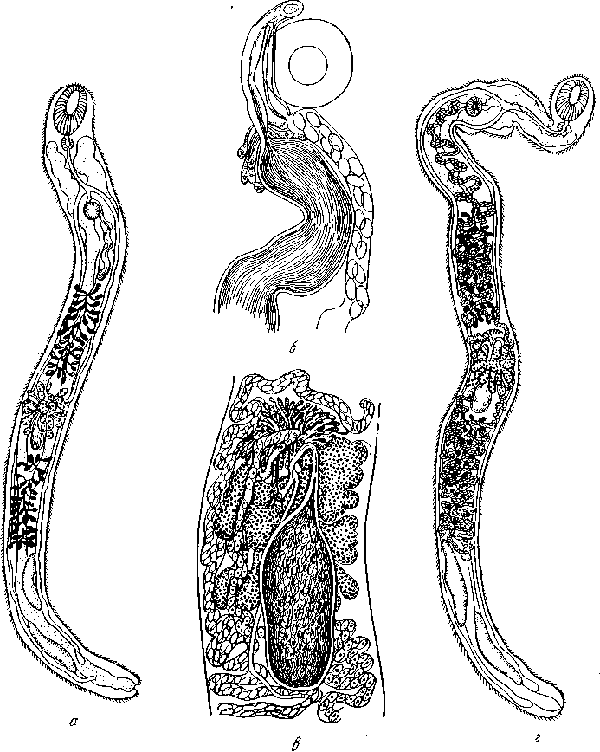 а и г — марита; б — концевой отдел половых органов; е — женские половые органы