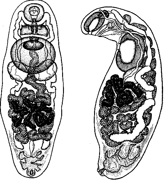 Они выглядят густым и однородным клубком. Как далеко простираются матка и кишечные стволы в хвостовой придаток, Люэ не удалось установить, так как у изученных им экземпляров от Lophius piscatorius, так же как и у рудольфовских экземпляров, хвостовые придатки были почти или совершенно втянуты.