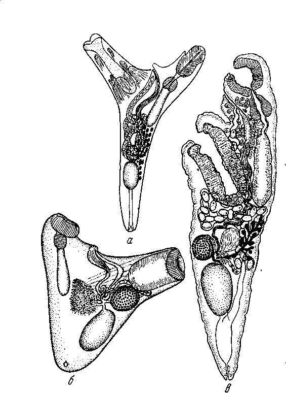 Экскреторный пузырь Y-образной формы, с коротким медианным стволом и довольно длинными ветвями.