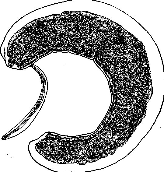 Два совершенно сходных экземпляра плотно соприкасаются в цисте друг с другом, причем задний конец одного входит в борозду на переднем конце задней части тела другого, образуя таким образом кольцо. Кутикула тонкая и гладкая. Субкутикулярная мускулатура развита слабо.