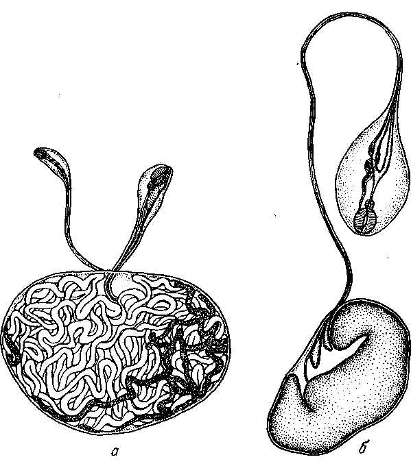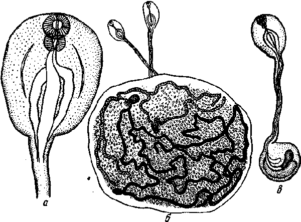 a — головной конец; б — самка; в — самец