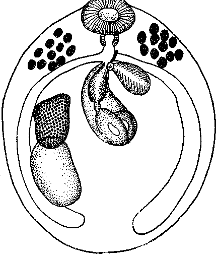 Monorchis parvus Looss, 1902 (по Власенко, 1931)