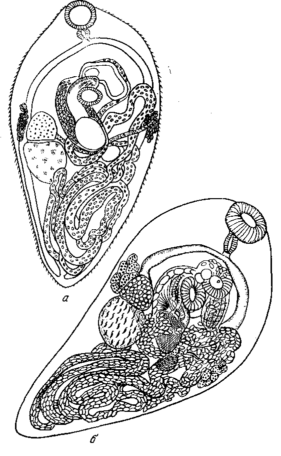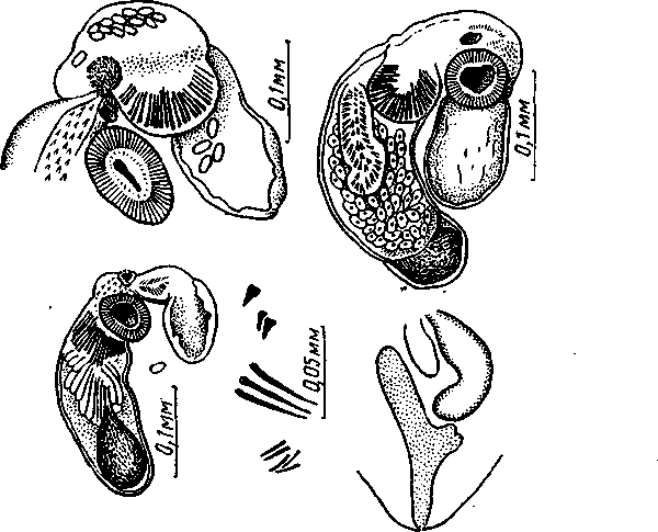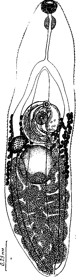 Яичник овальный, 0,10—0,20 X 0,10—0,15 мм, располагается непосредственно кпереди и вправо от семенника.