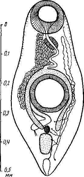 Asymphylodora tincae Modeer, 1790 (по Сцидату, 1943)