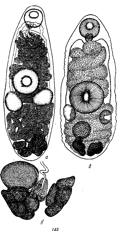 а— общий вид; б — женская половая система; в — общий вид