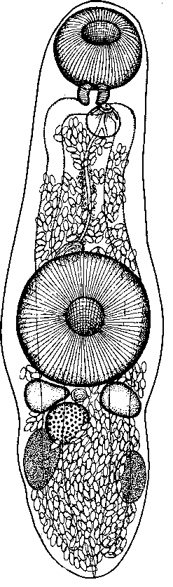 Описание вида (по Ямагути, 1938). Тело цилиндрическое, изогнутое дорзально у брюшной присоски, закругленное у переднего конца и тупо заостренное у заднего; размер тела 3,0—3,2x0,7—0,95 мм. Кутикула толстая, невооруженная. Преоральная губа 0,024—0,080 мм толщины. Диаметры ротовой присоски 0,44—0,46x0,51 мм; фаринкса 0,15x0,21 мм. Пищевод короткий. Кишечные стволы расположены дорзально, почти параллельно один другому, заканчиваются вблизи заднего конца тела. Брюшная присоска 0,75—0,80 мм в диаметре, своей центральной частью расположена у середины тела у паратипа и немного позади середины тела у типа.