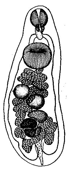 Описание вида (по Линтону, 1940). Тело гладкое, длинное, овально-эллипеоидное, довольно равномерной ширины, с тупо закругленными концами. Брюшная присоска приблизительно в два раза больше ротовой, а фаринкс в два раза меньше последней. Префаринкс отсутствует. Пищевод, если он существует, очень короткий. Кишечные стволы достигают заднего конца тела. Половое отверстие находится позади ротовой присоски. Гермафродитная бурса короткая, с толстыми стенками; она частично перекрывает передний край брюшной присоски. Семенники закрыты яйцами, но, видимо, лежат на небольшом расстоянии позади брюшной присоски, почти поперек. Яичник расположен позади семенников, справа от медианной линии. Желточники находятся позади яичника близ заднего конца тела. Яйца рассеяны по всему телу позади брюшной присоски, до заднего конца тела.