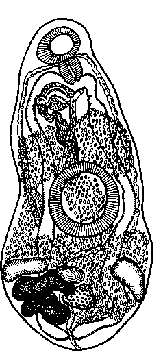 Описание вида (по Мантеру, 1947). Тело мышечное, коническое к обоим концам. Длина тела 1,102—2,698 мм при ширине 0,425— 0,730 мм. Ротовая присоска субтерминальная, несколько шире, нежели длиннее; ее поперечный диаметр 0,170—0,240 мм. Брюшная присоска лежит позади середины тела, 0,289—0,450 мм в диаметре. Соотношение размеров присосок около 1 : 2, брюшная присоска обычно почти вдвое больше ротовой.