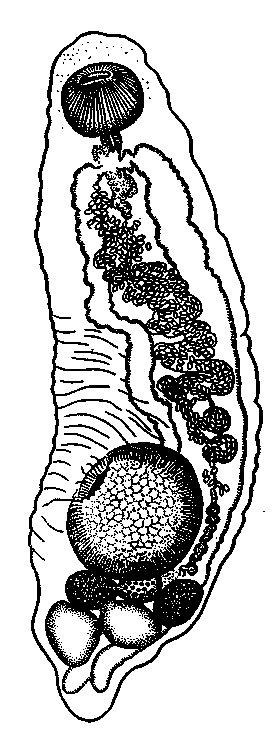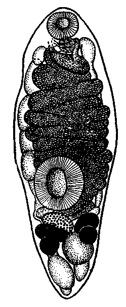 Описание вида (по Вольфгангу и Майеру, 1954). Тело спереди сужено, достигает максимальной ширины в задней четверти. Длина тела. 4,4—13 мм, ширина 1,6—4,4 мм, длина передней части тела 1,6—8 мм. Ротовая присоска субтерминальная с поперечным диаметром 0,5—0,9 мм; над ней возвышается короткая, преоральная губа. Брюшная присоска, с хорошо развитыми мышцами, расположена слегка позади середины тела у мелких экземпляров и на середине тела у более крупных; ее поперечный диаметр достигает 0,77—1,8 мм.