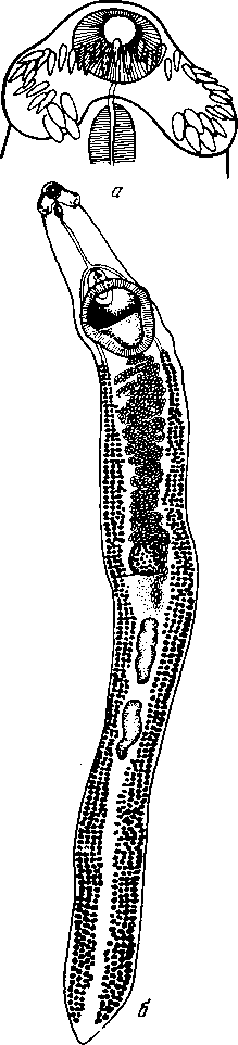 Вся передняя часть тела как вентрально, так и дорзально усеяна толстыми кутикулярными шипиками, которые, однако, не простираются дальше брюшной присоски.