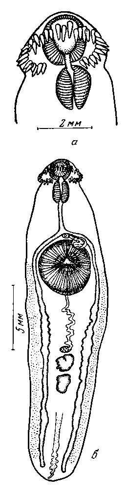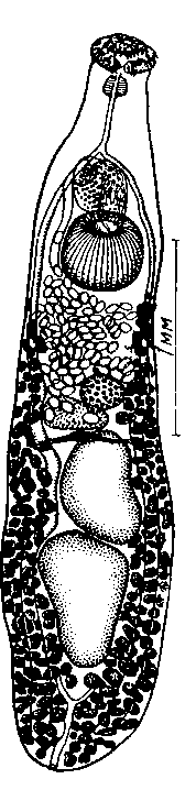 Желточники не вполне развиты и состоят из маленьких, расплывчатых фолликулов, простирающихся от заднего конца тела до уровня брюшной присоски.
