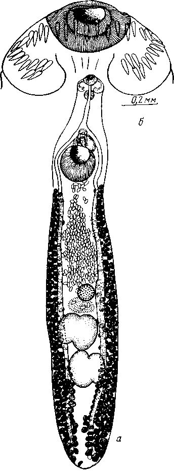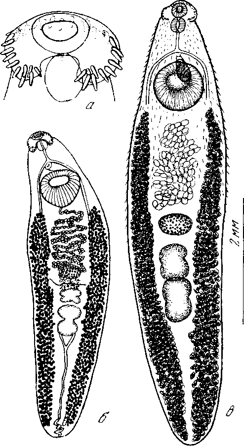 а - адоральный диск; 6 — марита (по Дитцу, 1910); в — марита (по Ошмарину, от утки-касатки)