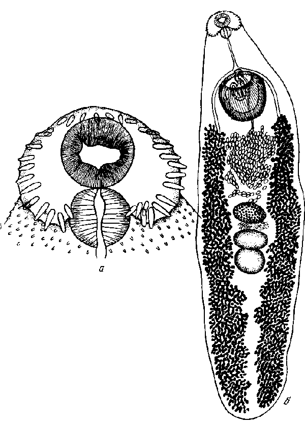 Матка сильно развита и заполнена многочисленными яйцами размером около 0,100 х 0,060—0,065 мм (по фиксированному материалу). Сильно развитые желточники состоят из многочисленных мелких фолликулов и заполняют позади семенников почти все тело, оставляя узкий просвет по срединной линии.