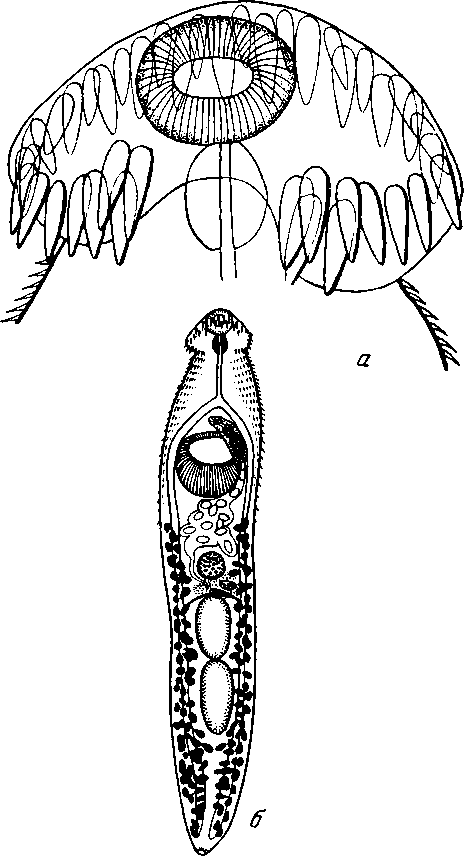 a — адоральный диск (по Дитцу, 1910); б — марита (по Лооссу, 1899)
