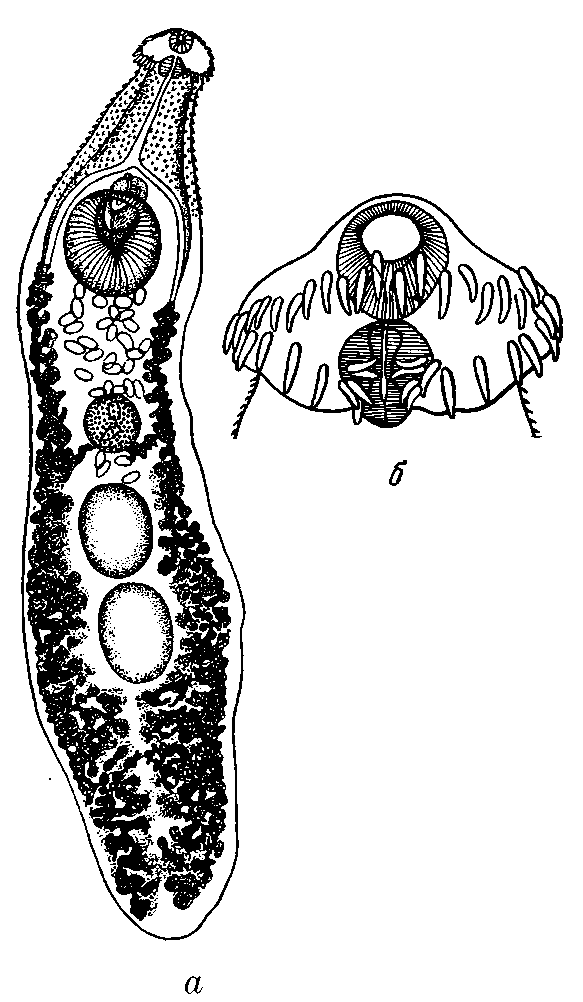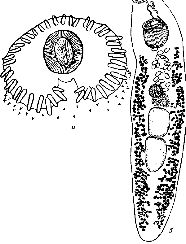 a — марита (по Скрябину, 1915); 6 — адоральный диск (по Быховской-Павловской, 1953)