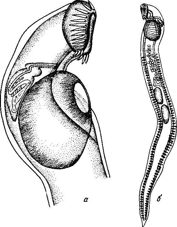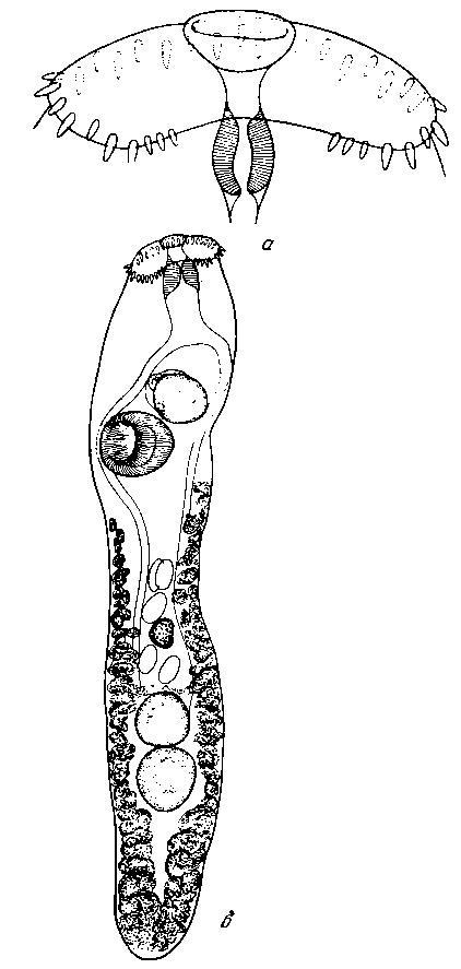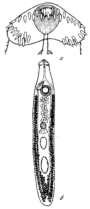 а — передний конец тела латерально; б — марита латерально