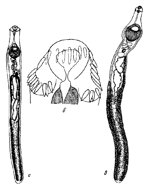 a — марита (по Фурману, 1904); б — адоральный диск и в — марита (по Мендхейму, 1940)