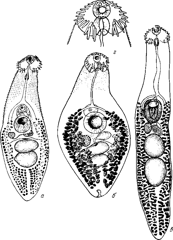 a — марита (по Котлану, 1922); б — то же (по Дитцу, 1910); в — то же (по Башкировой, 1941); г — адоральный диск (по Дитцу, 1910)