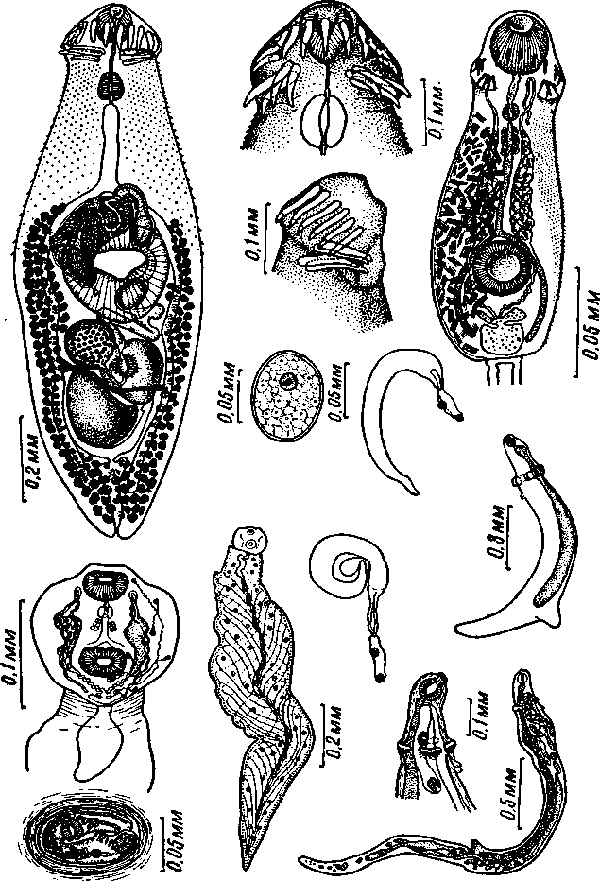 Petasiger (Neopetasiger) nitidus Linton, 1928. Цикл развития (по Биверу, 1939). Марита и личиночные стадии