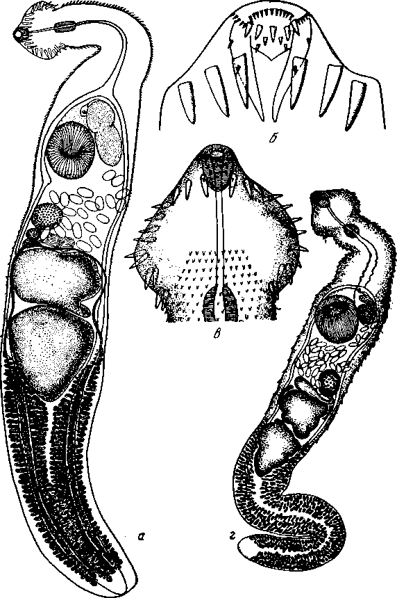 a — марита (по Дольфю, 1950); б — адоральный диск; в — передний конец; г — марита (по Однеру, 1902)