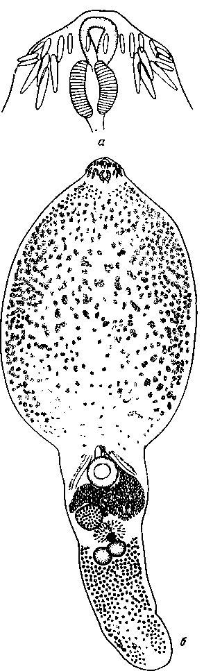 Chaunocephalus panduriformis Travassos, 1922 (по Травассосу, 1938). Экземпляры со вздутиями пищевода