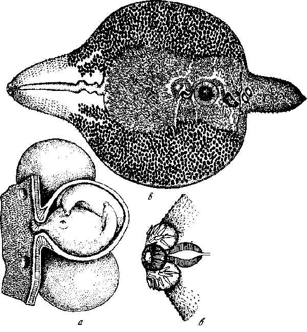 a — две мариты в цисте (по Фурману, 1928); б — адоральный диск и в — марита (по Однеру, 1911)