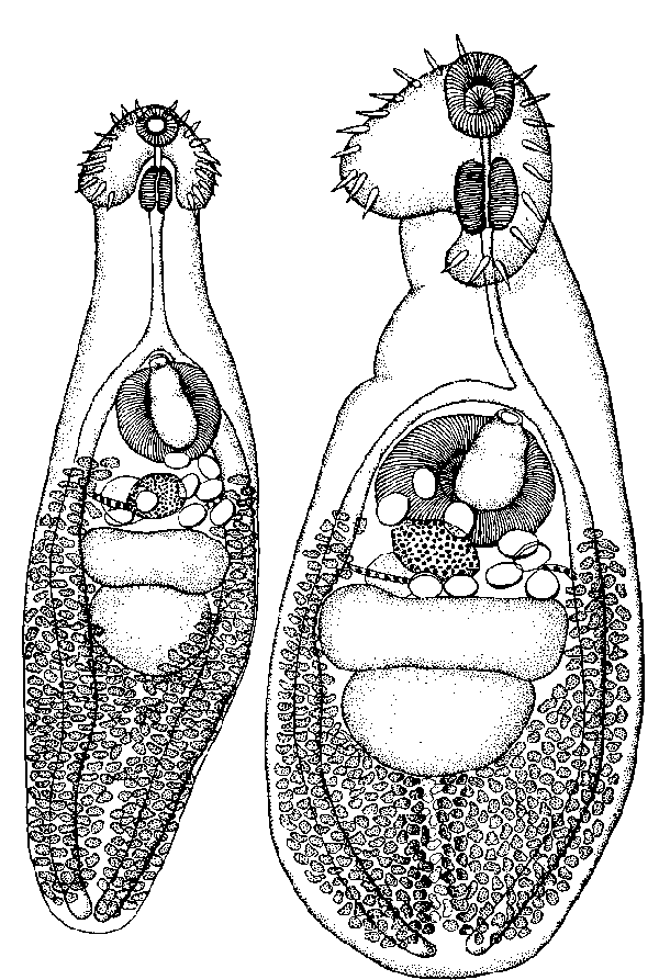 Длинный лауреров канал содержит в своей внутренней части сперматозоиды, тогда как наружная его часть очень узкая и, по-видимому, лишена наружного отверстия; его концевая часть располагается непосредственно дорзально от левого кишечного ствола.