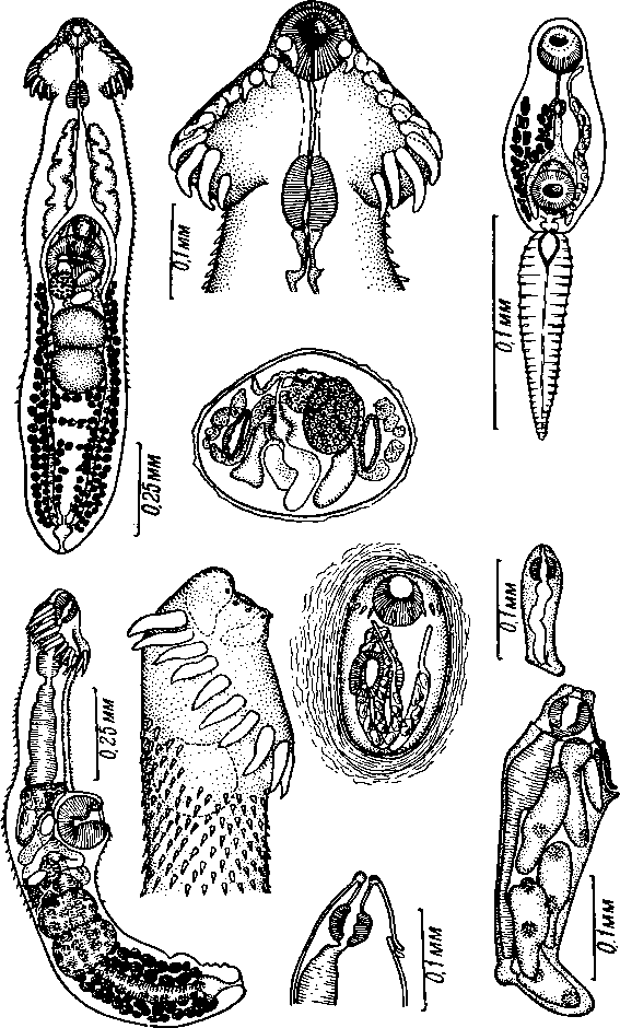 Echinochasmus (Echinochasmus) donaldsoni Beaver, 1941 (по Биверу, 1941). Марита и личиночные стадии