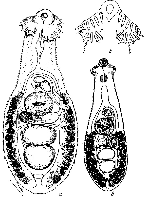 a — марита и б — адоральный диск (по Ужие, 1936); в— марита (по Нмагути, 1939)
