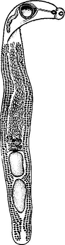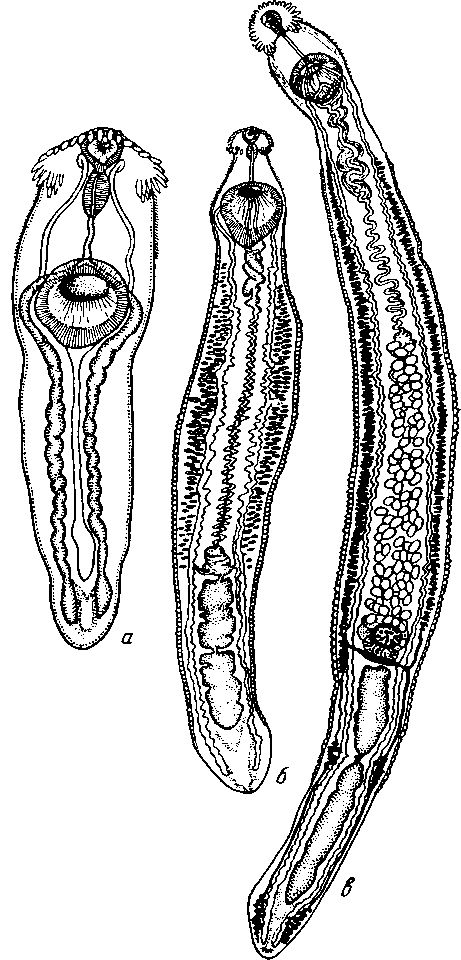 a — молодая марита (3-дневная); б — молодая марита (12-дневная); в — зрелая марита (от Larus argentatus на 31-й день после заражения)