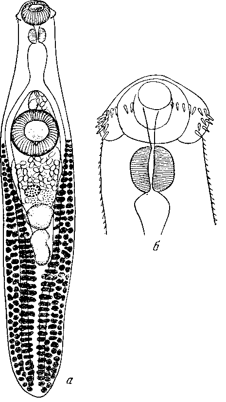 Описание вида (по Ишин, 1935). Тело паразитов уплощено в спинно-брюшном направлении и достигает 4,23—4,59 мм длины и 0,73— 0,79 мм ширины. Головной воротник 0,39—0,44 мм в диаметре, вооружен 24 шипами, расположенными с дорзальным перерывом. Шипы 0,047— 0,056х 0,009—0,012 мм. Округлая ротовая присоска 0,23—0,28 X 0,25—0,35 мм, лежит у переднего конца тела. Брюшная присоска 0,47—0,54 мм в диаметре, располагается в передней трети тела. Тонкие кутикулярные шипы плотно покрывают переднюю часть тела и редеют но направлению к заднему концу.