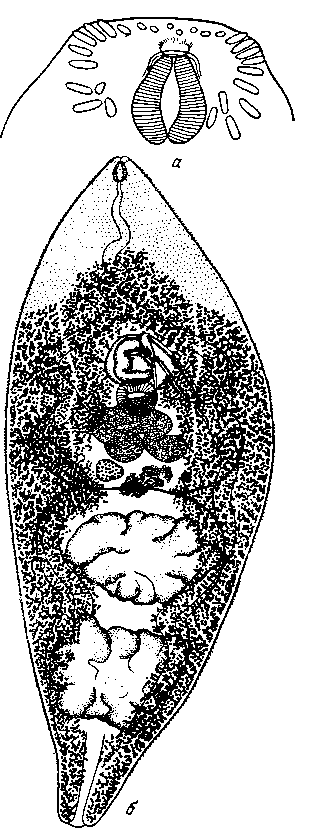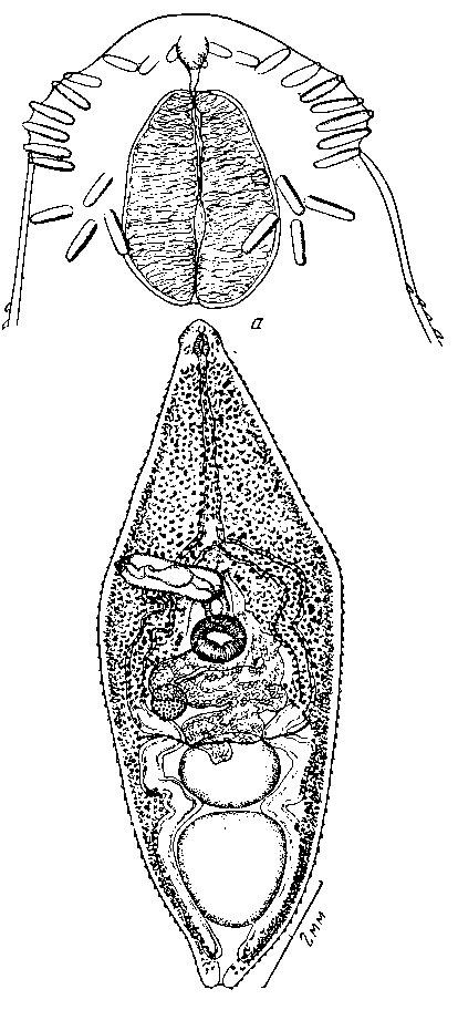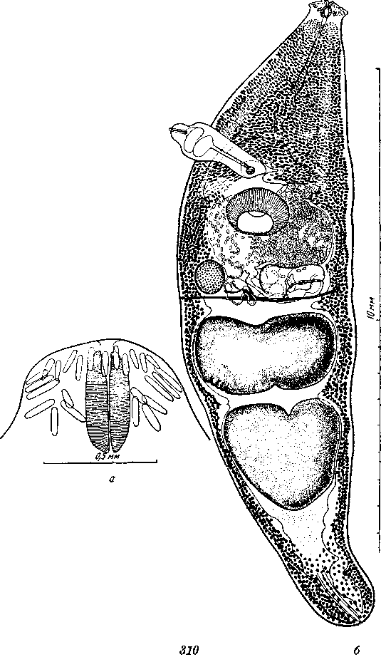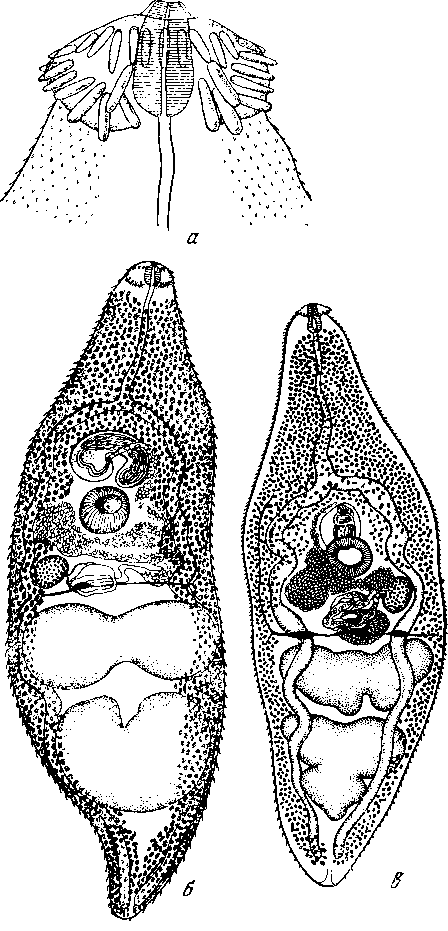 a —адоральный диск и б — марита (по Однеру, 1911); в—марита от белой цапли (по Быховской-Павловской, 1955)