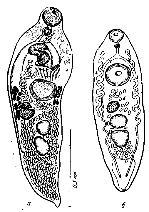 Простатический пузырек лежит под углом к семенному пузырьку, приблизительно того же размера, как передняя часть семенного пузырька. Яичник яйцевидный, без лопастей, лежит приблизительно на одном уровне с передним семенником. Семяприемник находится впереди яичника. Матка заполняет большую часть тела кзади от брюшной присоски; метратерм не отмечен. Яйца достигают 0,037—0,042х Х0,017—0,020 мм, наиболее часто — 0,039x0,019 мм.