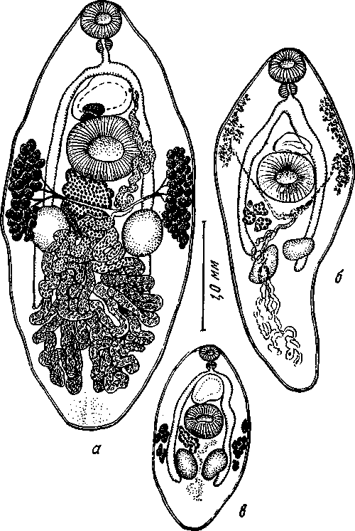 a — от камбалы; б — от зубатки; в — молодой экземпляр
