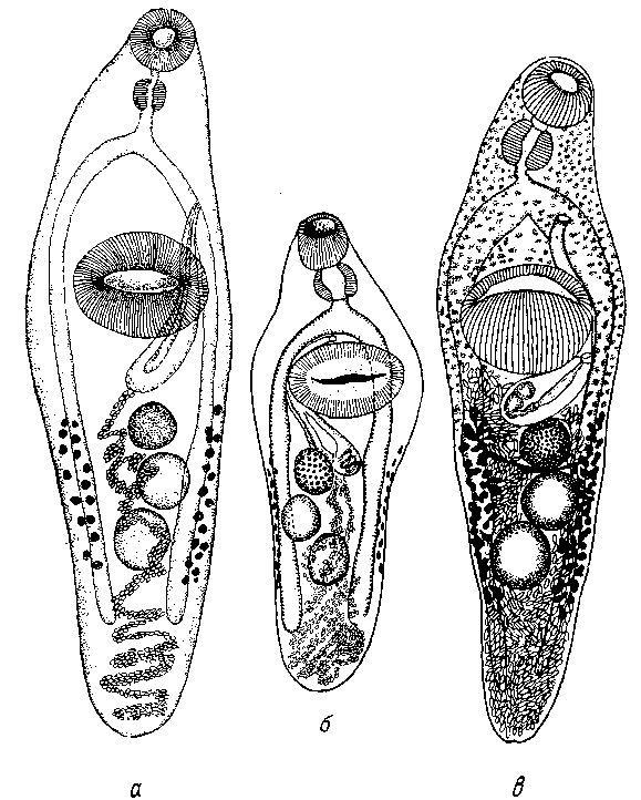 Длина наиболее крупного из найденных экземпляров при незначительном сокращении тела достигает 3,2 мм, максимальная ширина 0,8 мм, приблизительно на уровне брюшной присоски.