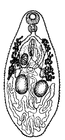 «Размер 1,65 X 0,46 мм. Брюшная присоска меньше ротовой и расположена в центре тела. Фаринкс, длинный пищевод и кишечные ветви не доходят до заднего конца тела. Половые отверстия лежат между брюшной присоской и кишечной бифуркацией. Яичник позади брюшной присоски. Семенники правый и левый лежат сразу же позади кишечных ветвей. Матка медианная. Желточники латеральные, простираются почти по всей длине паразита. Латеральные ветви экскреторной системы хорошо заметны».