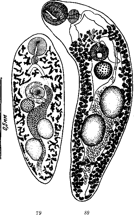 80. Plagiorchis (Multiglandularis) massino Petrow et Tichonov, 1927 (по Петрову и Тихонову, 1927)