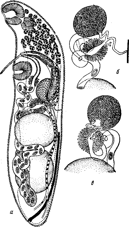 a — марита; б — женская половая система латерально; в — женская половая система дорзально