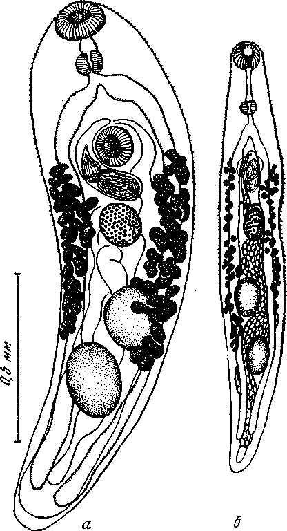 «Glypthelmins repandum (Rud., 1819) Travassos, 1924 имеет заметное сходство с видами рода Microderma Mehra, 1931 по резко диагональному положению семенников на значительном расстоянии позади брюшной присоски и расположению желточников ближе к заднему концу тела. Поэтому вносится предложение перевести G. repandum в род Microderma. Что касается видов Glypthelmins elegans и G. linguatula, то они отличаются от типичного вида рода Glypthelmins тремя важными признаками: 1) значительно большим размером и развитием половой бурсы, 2) более экстенсивным расположением желточников и 3) тем, что матка образует ясно выраженные петли впереди семенников.