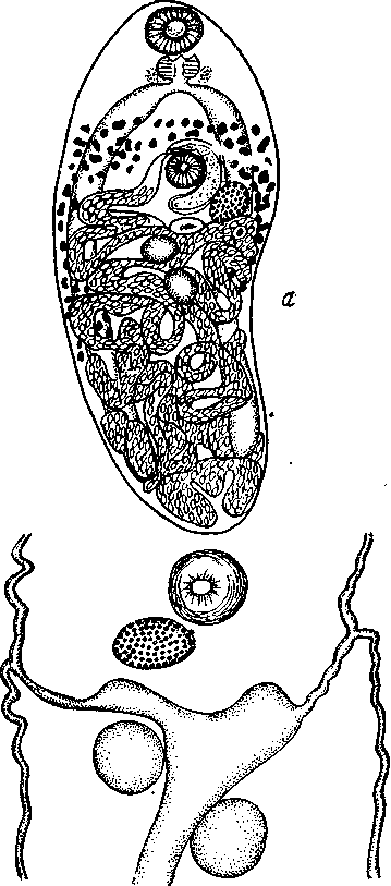 a — марита; 6 — расположение гонад и экскреторного пузыря