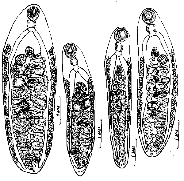 Glypthelmins palmipedis (Lutz, 1928) (по Фрейтасу, 1941)