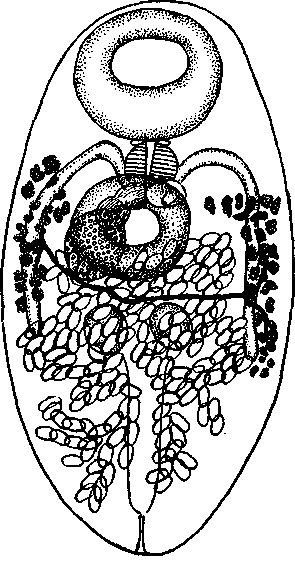 Возникает вопрос: каким путем происходит в природе освобождение у этой трематоды яйцевых элементов, коль скоро паразит пребывает; в замурованном состоянии, локализуясь в тканях, не имеющих контакта с внешней средой? По-видимому, здесь имеет место участие какого-либо хищного животного, питающегося моллюском, в пищеварительных органах которого, под влиянием ферментов, яйца трематоды становятся свободными и, пройдя транзитно через кишечный тракт во внешнюю среду, приобретают возможность снова инвазировать своего единственного хозяина — моллюска.