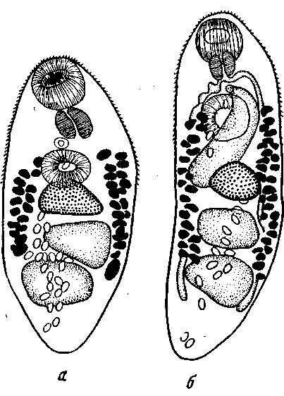 а - марита вентрально; б — марита дорзально (по Миллеру, 1940)