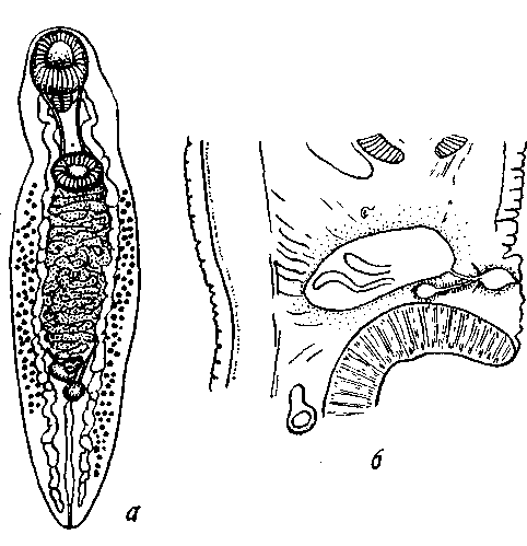 а — марита; б — сагиттальный срез через концевой половой аппарат