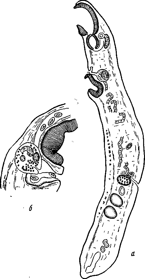 a — сагиттальный срез мариты; б — сагиттальный срез в области половой бурсы