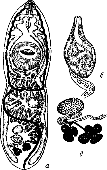 a — марита; 6 — половая бурса; в — схема женской половой системы