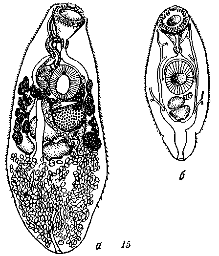 a — марита, общий вид; б — экскреторная система